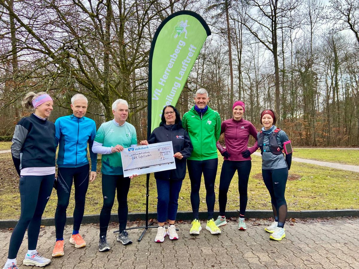 Frau Koebe vom Tafelladen hat uns zur symbolischen Scheckübergabe vor dem Start zu unserem samstäglichen Lauf besucht. Auch diesmal konnten Mitglieder des Lauftreffs wieder einen selbst festgelegten Betrag pro gelaufenen Kilometer spenden. Dabei sind diesmal 870€ zusammen gekommen.